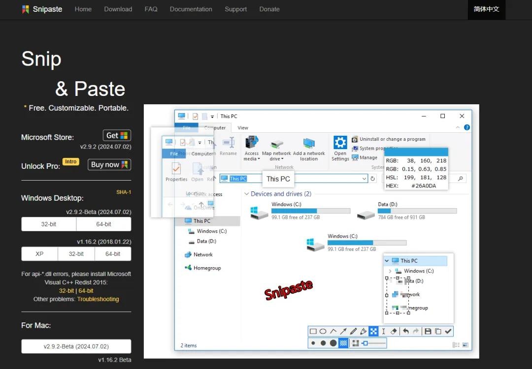 Snipaste是一款简单但功能强大的截图工具,它不仅可以快速截取屏幕上的任意区域,还能在截图上添加矩形、椭圆、文本、箭头等标注,非常适合在撰写文档或制作PPT时进行截图说明。
