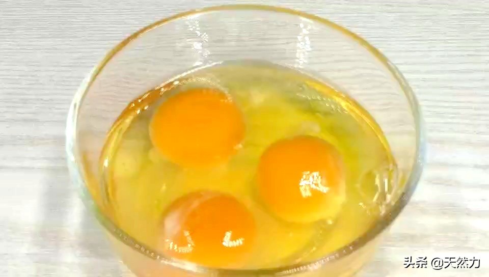 鸡蛋打入碗里,加少量的盐,然后打散备用。