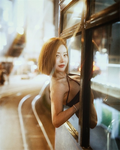 朦胧的巴士氛围,衬托克罗心经典蕾丝花纹的丝袜与项链吊坠格外抢镜。