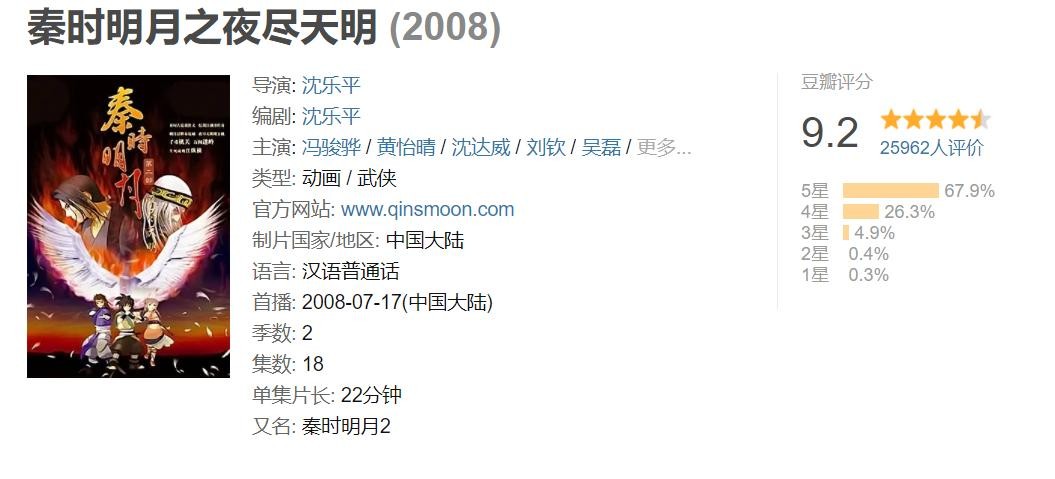 top3《秦时明月之夜尽天明》(豆瓣评分:9.2)