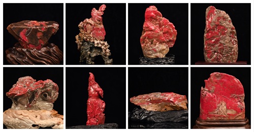 昌化鸡血石雕作品题材广泛、构思巧妙,精湛的技艺与鲜艳的鸡血颜色融会结合,独具特色。