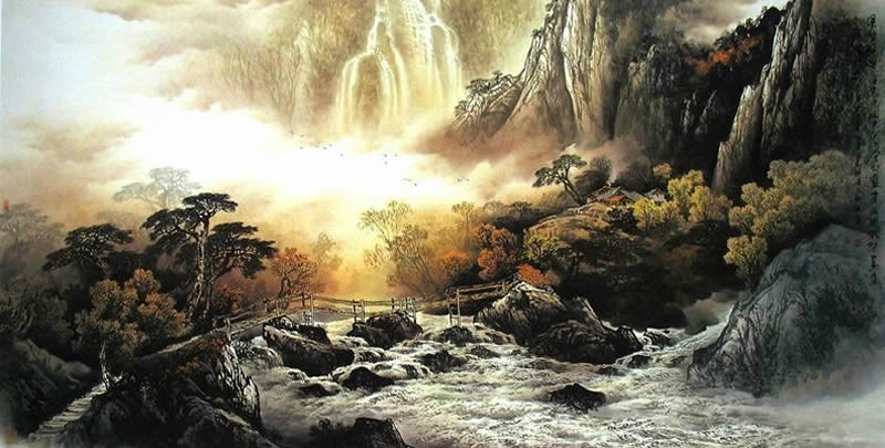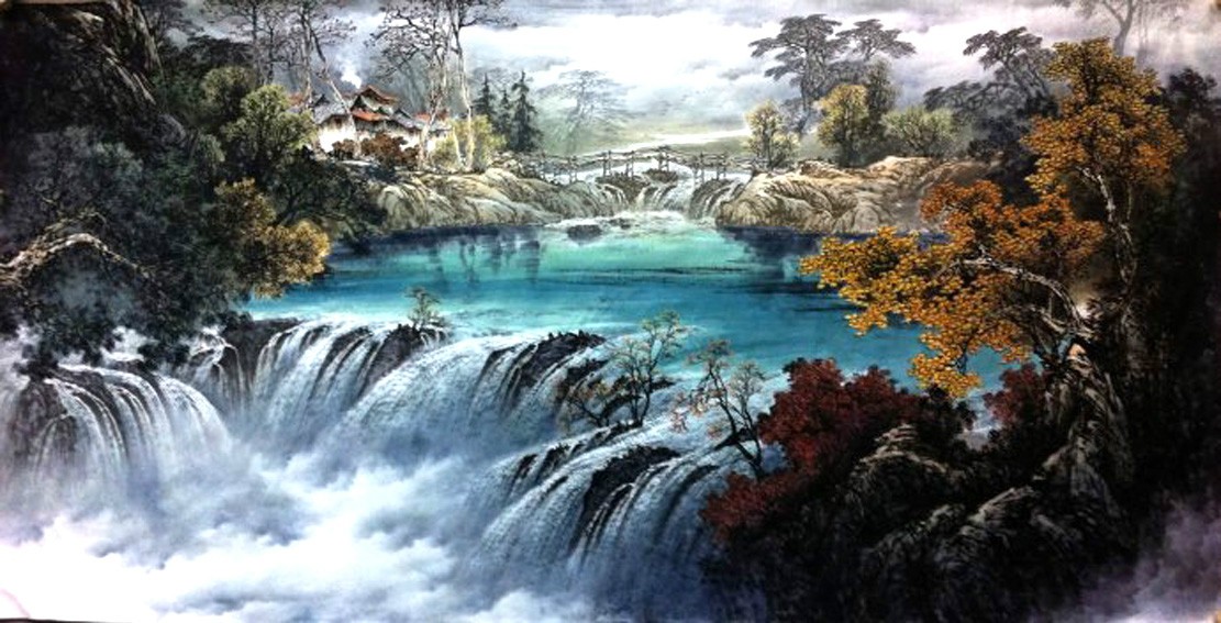 中国山水画主要分为两大类,即水墨山水和彩墨山水(青绿山水,青绿山水又分为大青绿、小青绿以及金碧山水等)。