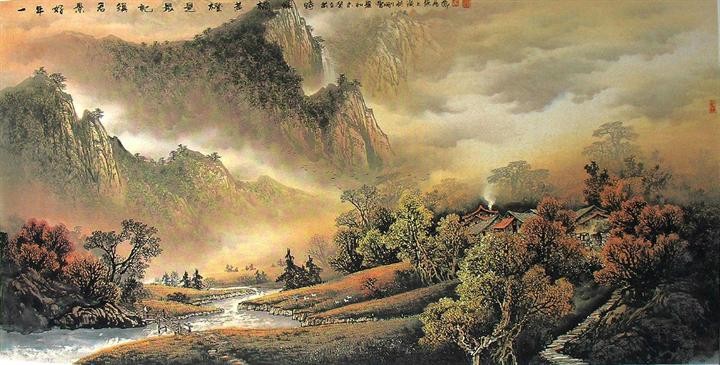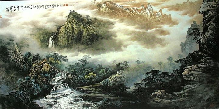 曾刚彩墨山水画
