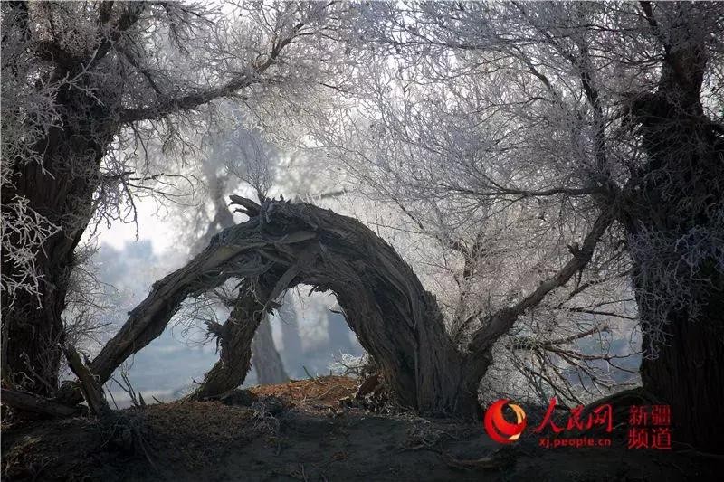 塔克拉玛干沙漠雾凇景观(资料图片)