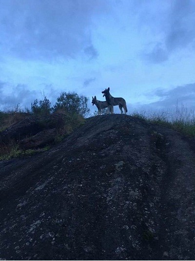 宠宠为大家带了一组在野外活动的狼青的照片,夜幕快降临之时,身处岩崖之上,此时的它们是否有狼的风范,酷酷的赶脚有没有......