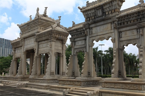 中华特色建筑文化中有一种牌坊,是封建社会为表彰功勋、科第、德政以及忠孝节义所建立的建筑物。位于广东珠海市前山镇梅溪村的石牌坊,建于清光绪十二年(1886年)和十七年(1891年),共3座。其中一座在文化大革命中被红卫兵所毁,其它2座“急公好义”坊、“乐善好施”坊在村民保护下幸存。梅溪牌坊用花岗岩制造,恰到好处的力学结构和精美的雕刻装饰,使之成为中西合璧的艺术造型。
