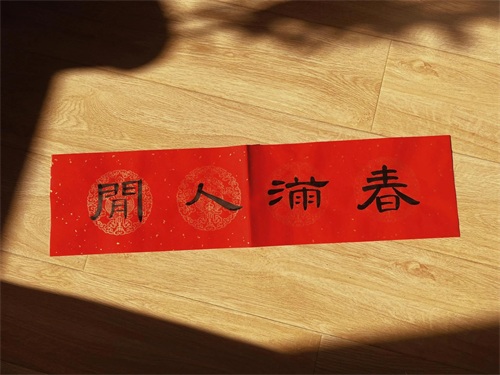 其次,横批的字数都是比较少的,一般是三个字到四个字,横批的作用就是对内容进行一个总结、升华或者是补充,使对联的主题能更加的明确和突出。(比如,上下联分别是描述了春天的景色和人们的喜悦心情,横批我们来一个“春满人间”就会更进一步的强化了春天带来的美好还有氛围感)