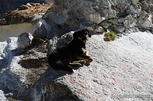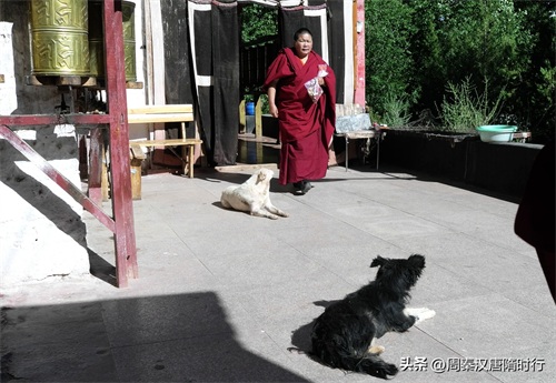 藏区人们都喜欢养狗,法国传教士古伯察在《鞑靼西藏旅行记》中写道,那里的人都喜欢养狗,特别是黑色的大狗,甚至不怕得疯狗病。现在,村前村里村后,特别是寺庙周边,有大量的流浪狗,他们没有固定的主人,善良的人常常定时给他们食物。我认识一个朋友,以前他经常给流浪狗吃的,以至于走到哪里,就跟着一群黑狗,人称“狗王”。有次我在拉鲁湿地之后的一个村庄拍照,遇到一只土狗,居然也像贵宾宠物狗一样直立行走,人模狗样,妙趣横生。