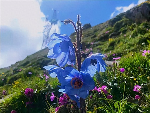 绿绒蒿究竟有多美呢?据说它拥有世界上最唯美的花朵,花瓣柔美花色梦幻,在高海拔地区头顶蓝天白云,迎风而立,傲娇又美艳,见过它的人无一不夸,都说它有着惊艳时光的神仙颜值。