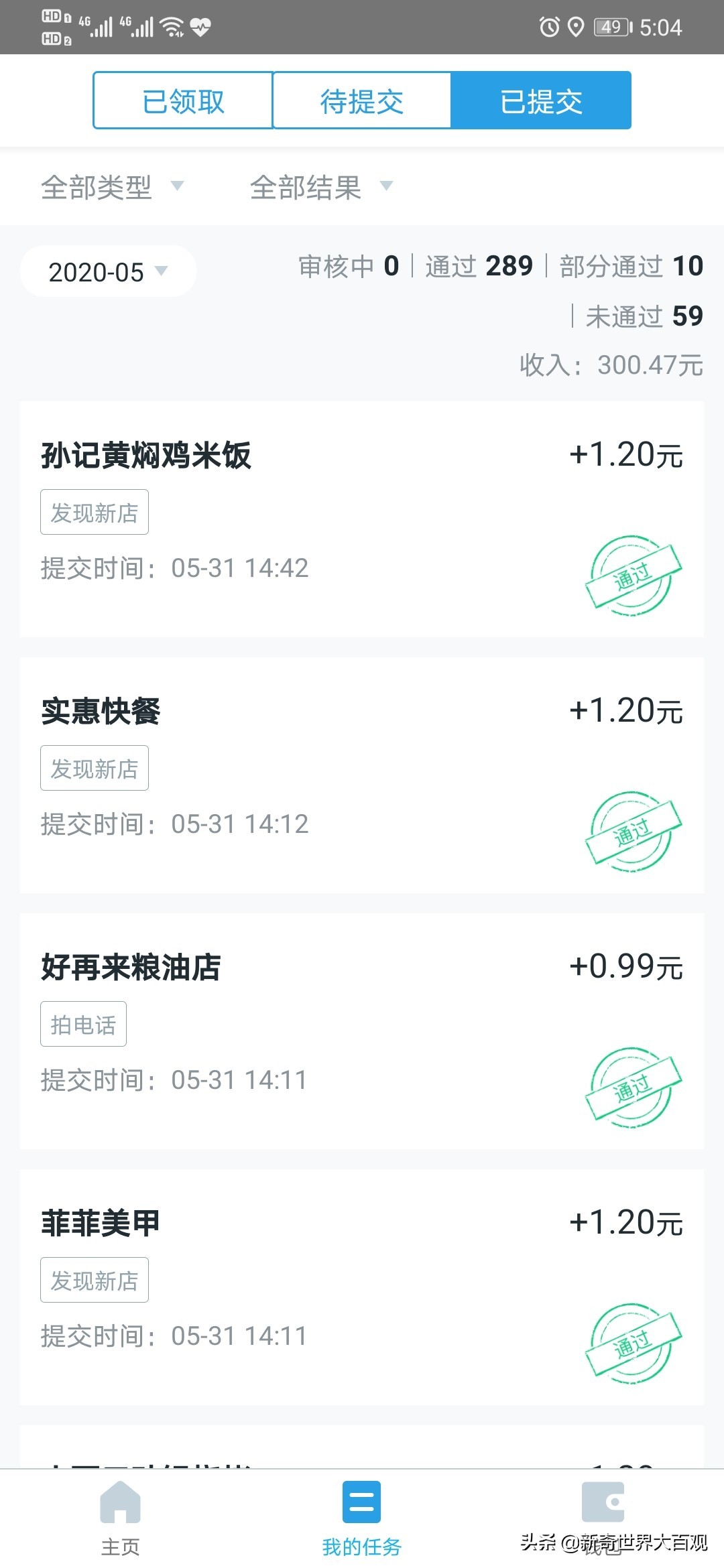 拍店数量方面,2个月的时间,共拍店620家,其中通过、部分通过528家,不通过91家,审核中1家,通过率为85.16%。620家店铺拍摄任务包括两部分,一是出门拍店任务,即平台列出需要拍摄的店铺,拍摄者根据导航寻找拍摄;二是发现新店任务,即自己发现新店,将其录入平台系统。我所拍摄的620家店铺中,大部分都是发现新店任务。