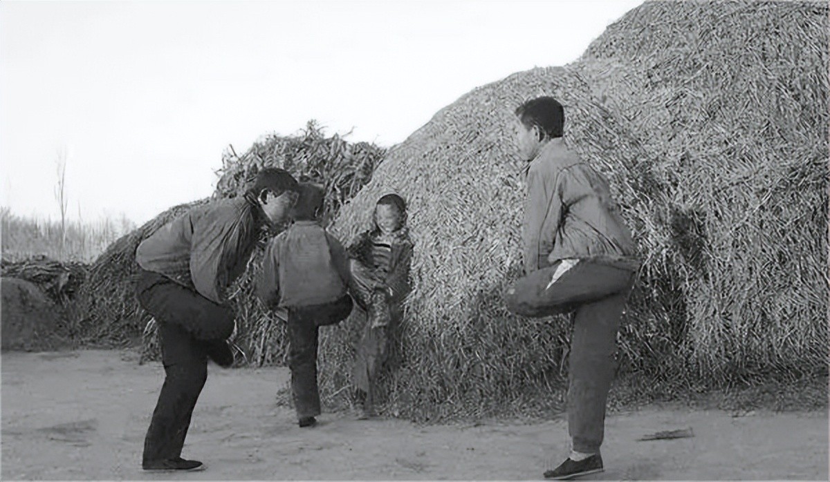 与小伙伴玩“斗鸡”游戏,一玩儿就是一下午,也不用考虑会不会摔到,那时候都是泥土地,还有稻草垛、秸秆垛,人也没有现在那么“娇贵”。