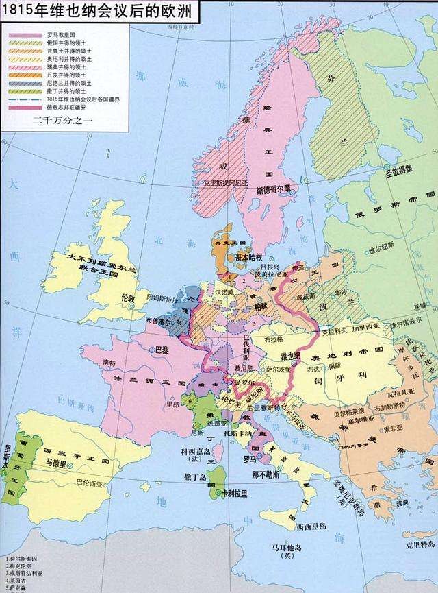 1815年拿破仑帝国崩溃后,为了遏制法国,也为了防止欧洲再次面临法国式疯狂输出革命的恐慌,欧洲君主们非常害怕,后果很严重,战争刚刚结束不久,在奥地利的维也纳,欧洲反法同盟四大佬英、俄、奥、普决定建立欧洲新秩序。