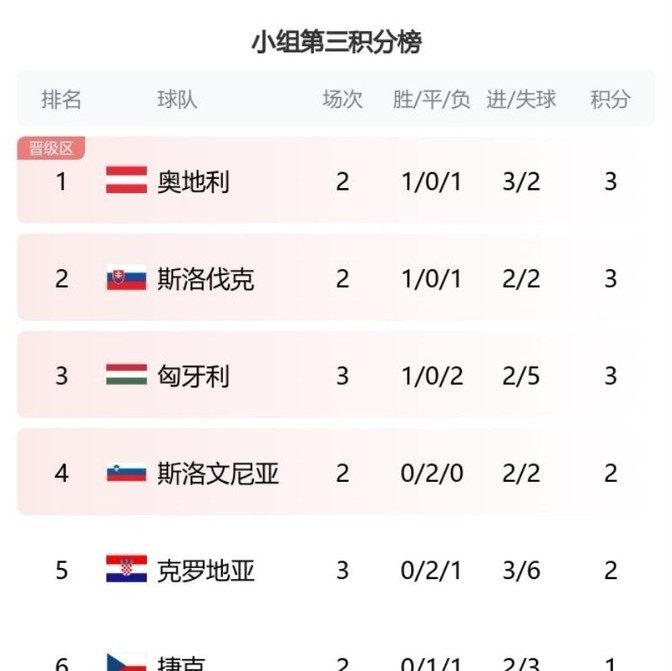 克罗地亚队这次在B组的表现,简直就是在刀尖上跳舞!三场小组赛下来,就拿了可怜巴巴的2分,净胜球还是-3,这成绩简直是惨不忍睹啊!现在他们在小组第三名的积分榜上排第五,就跟在悬崖边上蹦迪似的,随时可能掉下去!