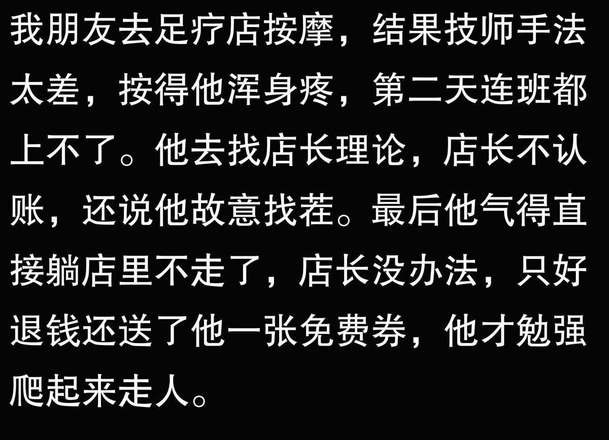 我那天路过小区门口那家足疗店,看见老王又进去了。这老小子,一个月得去三四回,每次出来都红光满面的。我寻思着,这玩意儿有啥好玩的?不就是让人捏捏脚吗?后来有一次我腰疼得厉害,老王非拉着我去试试。那技师一上手,我差点没叫出声来,疼得我直冒冷汗。可别说,按完还真舒服,浑身轻松。 打那以后,我也成了常客,隔三差五就去一趟。老婆问起来,我就说去理疗,反正她也不懂。