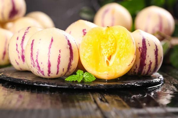 二、看色泽。好吃的人参果表皮光滑,熟了的表皮泛着月白或金灿灿的光,夹杂紫色纹路。