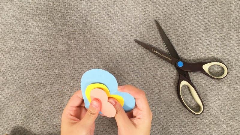 12、剪成长方形粘贴在爱心上