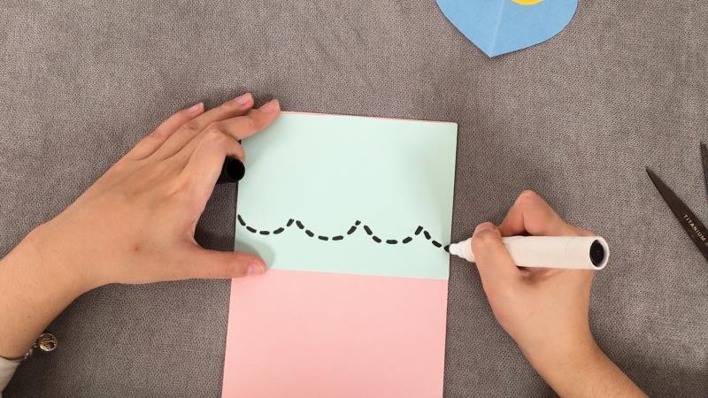 7、沿虚线剪下后粘贴在卡上,再按爱心大小依次粘贴上去
