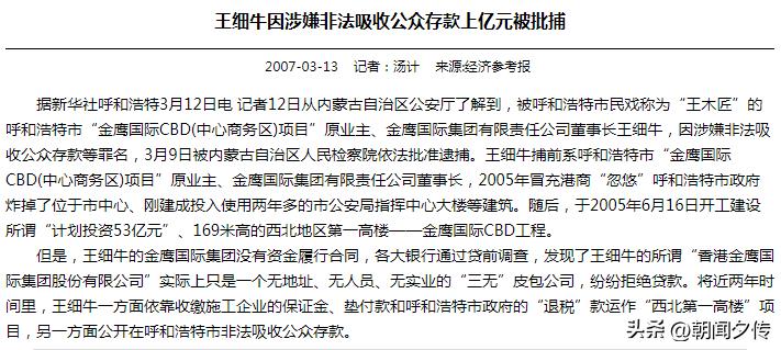 考察之后,王细牛在保镖地保护下,来到了呼和浩特。开启了他最后一次骗术的极限操作。这就是打造“西北第一高楼”——金鹰CBD,楼高169米,建筑面积63万平方米,总投资53亿。是宁夏银川项目的两倍多。