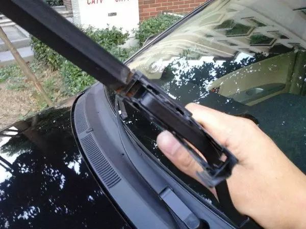4、雨刷臂的弹簧弹力很大,所以无论是哪一种雨刷,在拆卸下雨刷条后,都要将裸露的雨刷臂轻轻放回风挡玻璃上,保证安全。