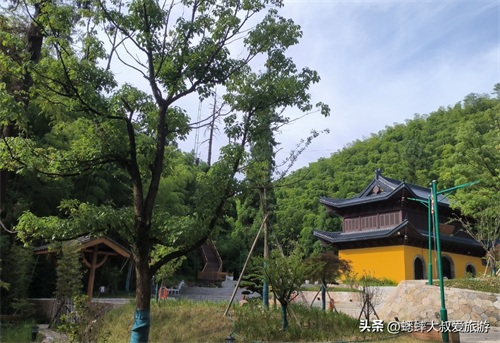 待逛累了,还可以去下釜托禅寺,位于余杭区百丈镇的杭宣古道上,被苍山翠竹环绕,寺庙人少幽静。寺庙门口的高大柳杉和银杏树令人印象深刻。在寺庙后面的孝恩塔底下的平台拍照风景极佳。