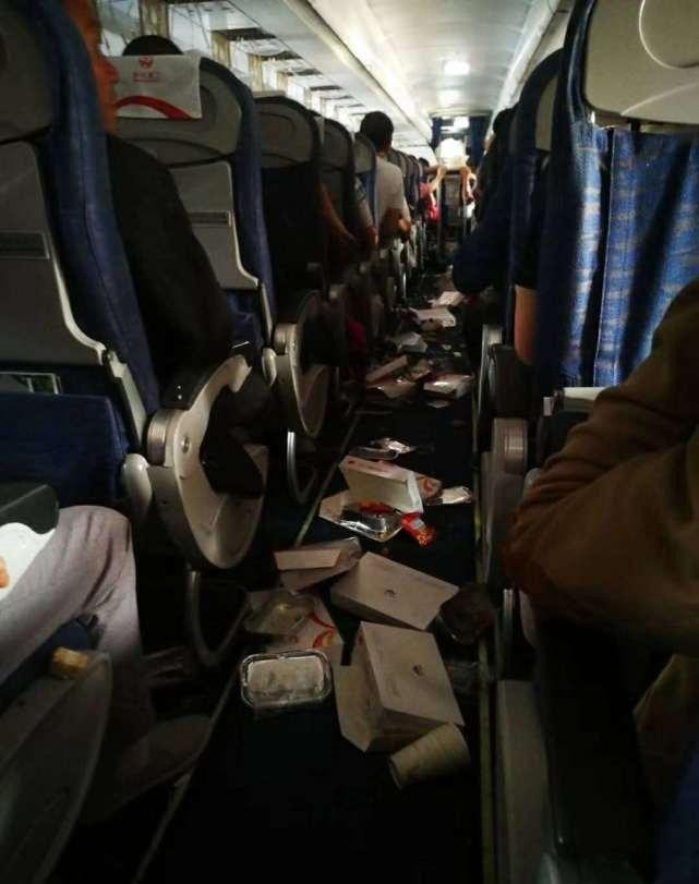 ▲机舱内物品脱落一地