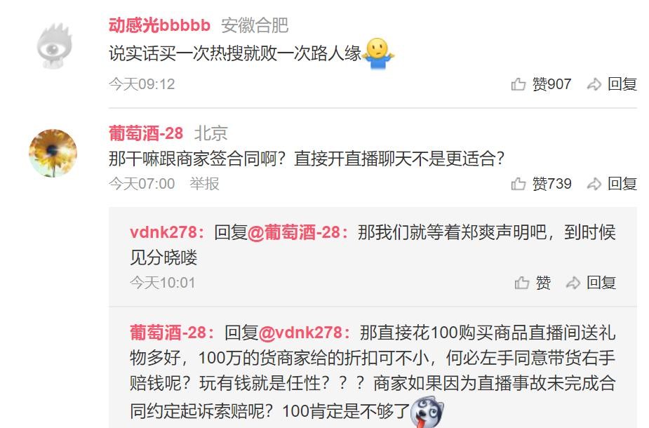 有人认为郑爽非常真性情,为粉丝考虑,两位主持人的到来让直播变得过分商业化,和郑爽预期的好物分享生日直播不一样才导致她情绪的失控;