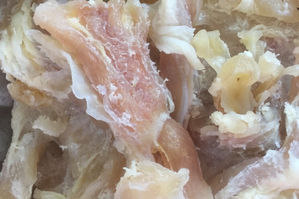 所以就有些不良商贩为了获取经济利益,在牛蹄筋中加入食用胶以假乱真。那么我们应该如何选取和分辨真假牛蹄筋了?我们应该选择购买色泽白亮且富有光泽,肉质半透明且质地紧密而且还要富有弹性的牛蹄筋,如果呈黄色,质地松软而且没有弹性,那说明很不新鲜了不要购买。分辨牛蹄筋的真假只要做到“一看、二掐、三烧”就非常容易了。