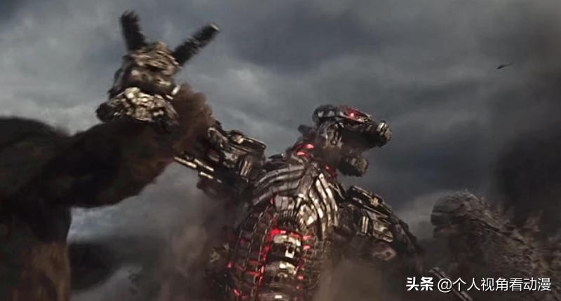 这里,其实导演也采用了一个很有趣的手法,那就是哥斯拉虽然战胜了金刚,但也是结结实实地挨了一斧子,虽然说哥斯拉防御力高,但也是受到了不小的伤害,再加上在此之前,原子吐息不要钱的放,甚至直接打到了地心深处来看,哥斯拉无疑是在体能和能量方面有一定的损耗,尤其是还和金刚打了一架了。原本就是残血状态下打了一次这样没有准备的仗,吃亏是必然的,也为金刚后来的加入增加了理由,所以说在这种情况下,更会显得机械哥斯拉更加的强大,事实上,能不能战胜基多拉根本就是一个未知数。