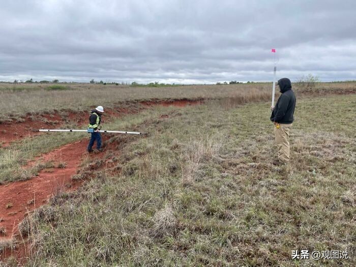 22 Geonics Em-31电磁测量单元。用它来检查与石油和天然气泄漏的氯化物水平相关的土壤电导率