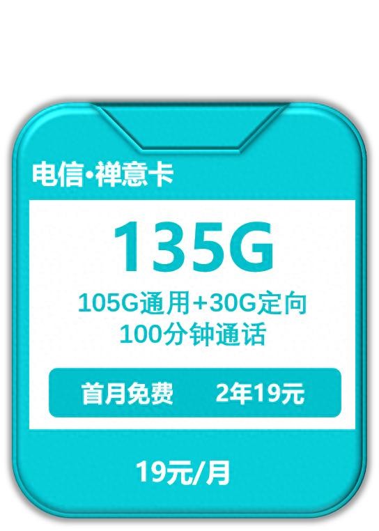 【电信禅意卡】19元/月135G全国流量+100分钟通话,首月免费