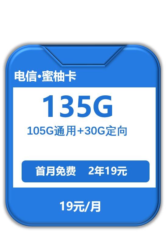 蜜柚卡原套餐39元/月包含5G通用流量+30G定向流量;套餐外流量5元/G,通话0.1元/分钟,短信0.1元/条;现在号卡升级,在原有流量基础上又增加了100G通用流量,激活福利后19元/月包含135G全国流量。
