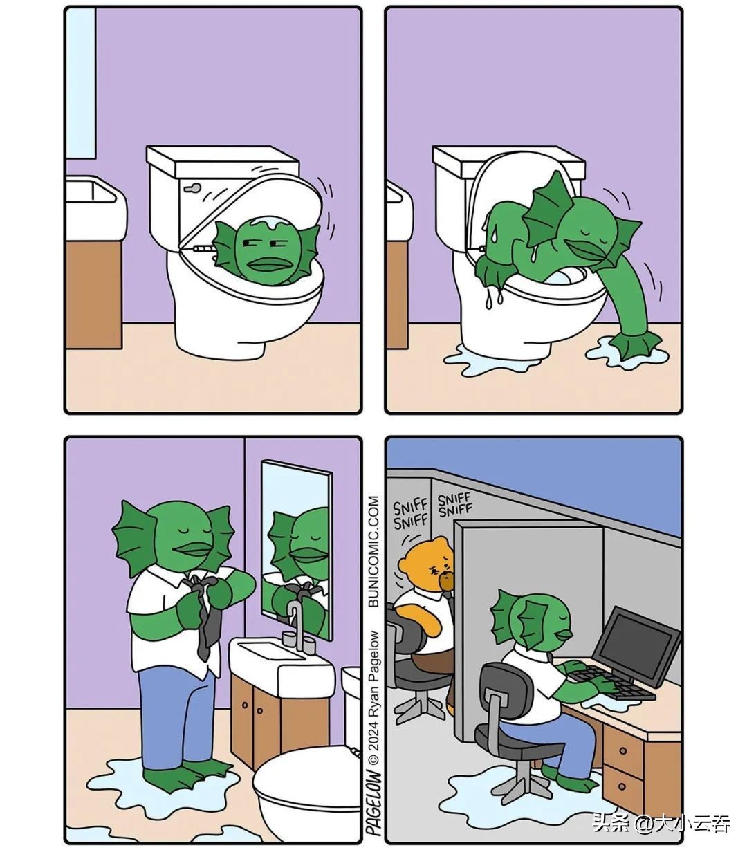 在这部漫画作品,除了担任主角的布尼外,还有许多人物,例如,布尼的怪人爸爸,布尼一直暗恋的女孩,甚至,许多食物、植物、动物也拥有了人类的行为,这样一来,这部漫画作品变得更加丰富有趣起来,接下来,我们就一起来欣赏一下瑞恩在最近一段时间绘制的,关于兔子布尼的系列漫画作品吧。