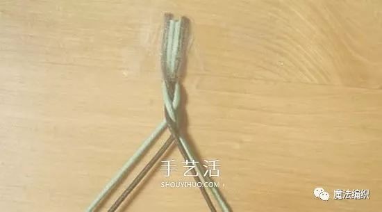 做成四股,开始编织手链。