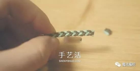 编织到合适长度后,剪去多余的部分。