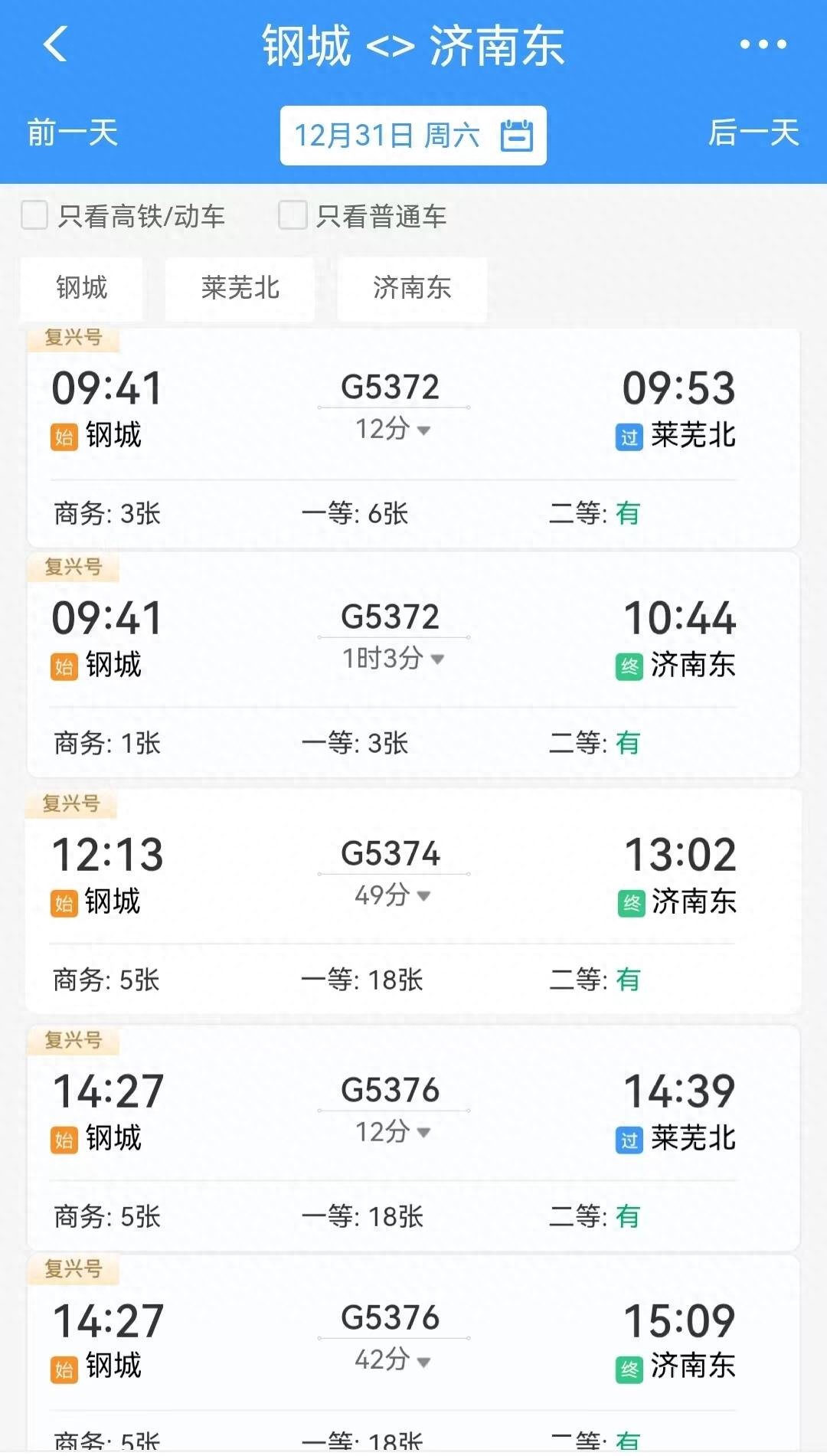 齐鲁网·闪电新闻12月30日讯 12月30日,全国首条市域高铁济(南)莱(芜)高铁正式开通运营。开通运营初期,铁路部门安排开行动车组列车4对、高峰线列车1对,分别为济南东至钢城G5371/G5372次、G5373/G5374次、G5375/G5376次、G5377/G5378次,G9325/G9326次高峰线列车。