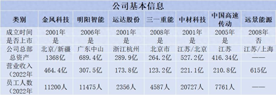 11家企业成立时间最早的是金风科技、运达股份和中材科技,均为2001年,至今约23年时间。