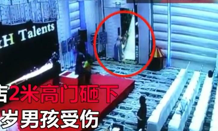 酒店2米高大门突然砸下致7岁男孩受伤 主办方:原因尚在调查中