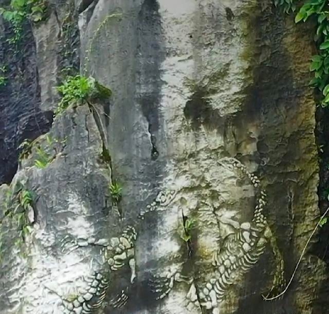 贵阳喀斯特公园,绝壁上的两只“亿年”生物化石,令人惊奇