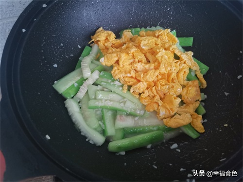 8、倒入之前炒好的鸡蛋,加入1勺蚝油,适量食用盐翻炒均匀后出锅。