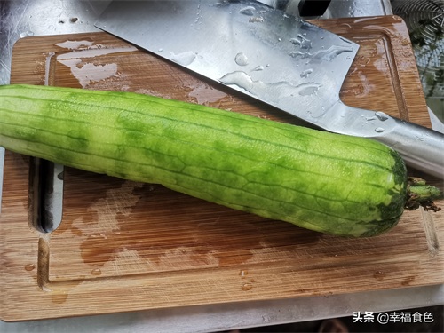 2、想要吃到脆嫩口感的丝瓜一定不要用刮皮刀,靠近表皮的部分是丝瓜脆嫩口感的关键,不要把最精华的部分给削掉了。
