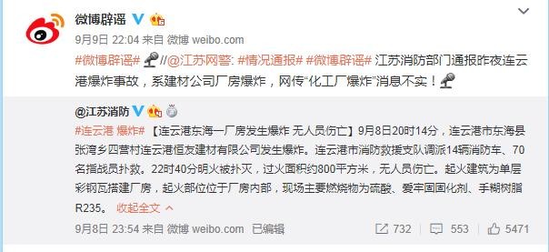 江苏消防通报连云港爆炸事故非网传“化工厂爆炸”