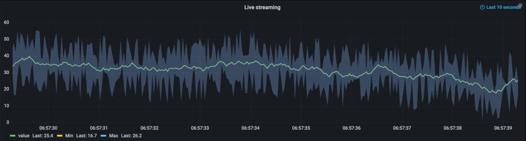 除了展示结果的可配置性之外,Grafana也在不断升级可视化报表的呈现效果,例如下图是Grafana Cloud 8.0版本的新版时序图表类型,能够支持每秒30帧动态刷新数千个指标点。