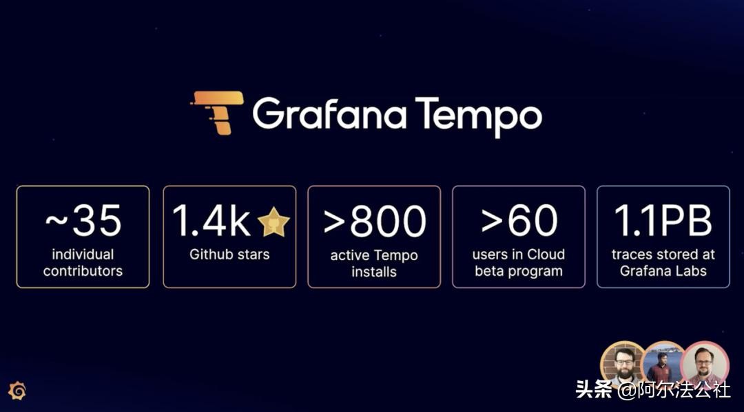 Tempo是一个开源的、可扩展的分布式追踪系统。与市场上其他链路追踪解决方案相比,Tempo不依赖任何专门的数据库平台,兼容性较好。在2021年,Tempo就已经有超过800的活跃安装量,Grafana Cloud平台上有60位以上用户使用了Tempo组件、存储了1.1PB的数据量。