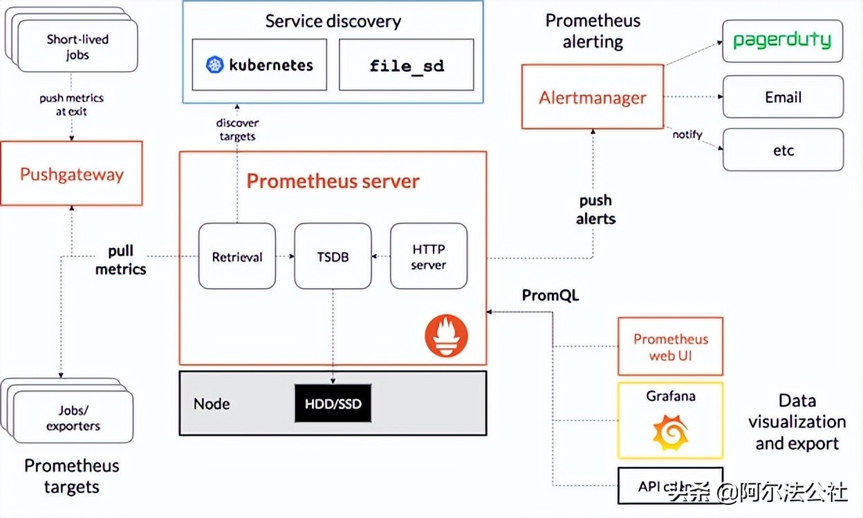 在Mimir正式发布之前,将Grafana与Prometheus配合使用是非常普遍的实践用例。用户通过Prometheus从想要监控的系统或程序中获取并存储数据。Prometheus强调存储和查询数据,而Grafana更强调数据的可视化呈现,两者组合在一起可谓完美的可观测性解决方案。