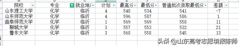 化学专业只有5所院校招生,最低录取分从587——534,也还是山理工录取分低,聊大高出正常录取21分。