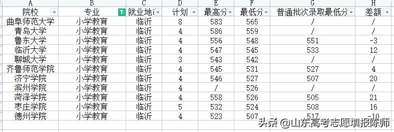 地理科学专业有6所院校招生,录取最低分583——547,临沂大学录取分数高出正常录取21,曲师大高出15分,济南大学又是比正常录取低。