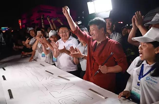 “作者连续15小时20分钟书写了面积为814.269平方米的一笔空心字,打破了之前705平方米的世界纪录!”23日晚,随着吉尼斯认证官的现场认证,山西岚县57岁的杨拴明挑战吉尼斯世界纪录获得成功,为即将在山西举办的第二届全国青年运动会献上一份厚礼。