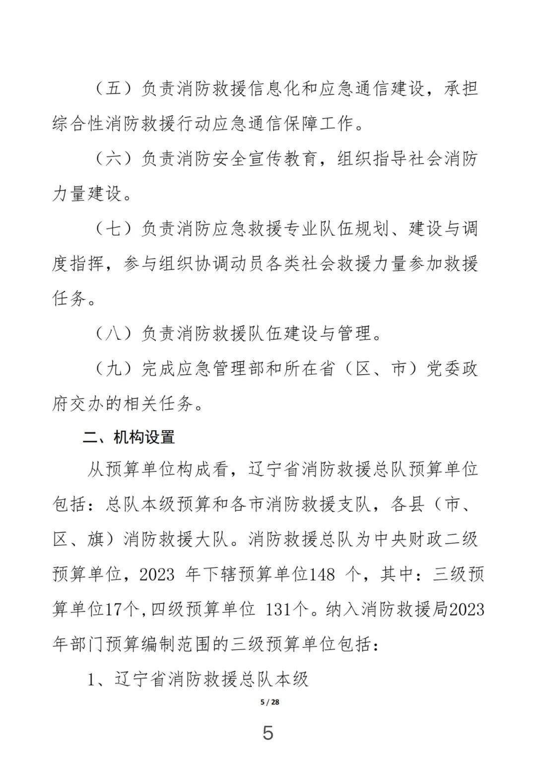 辽宁省消防救援总队2023年部门预算