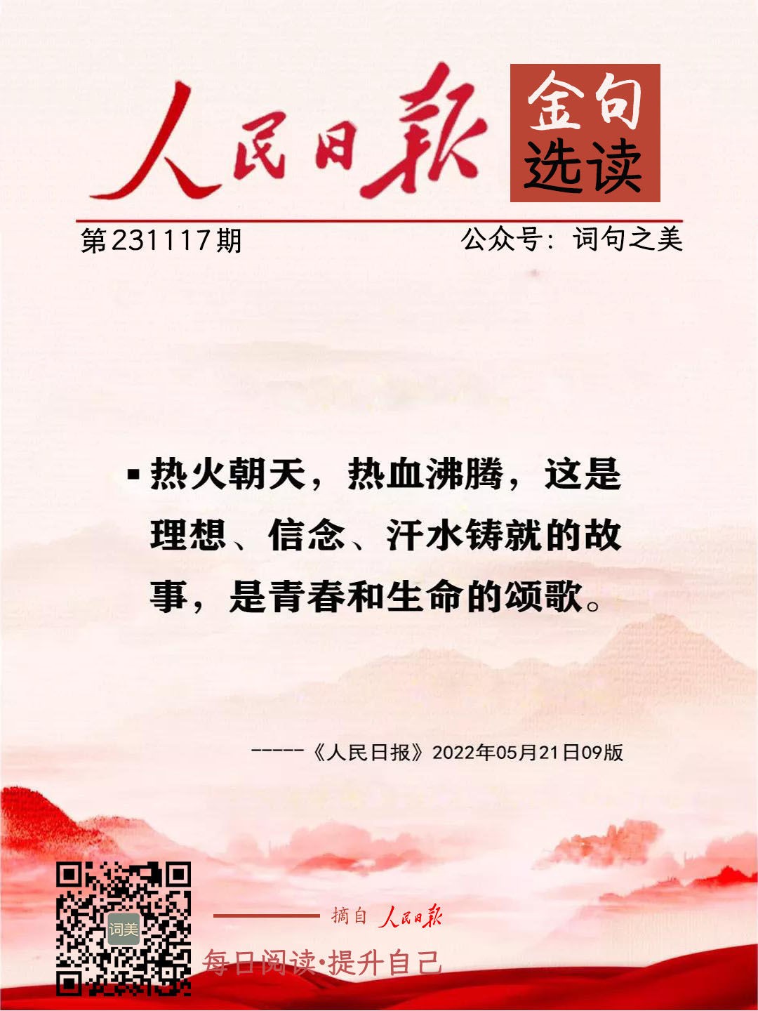 ▌热火朝天,热血沸腾,这是理想、信念、汗水铸就的故事,是青春和生命的颂歌。一一《人民日报》2022年05月21日09版