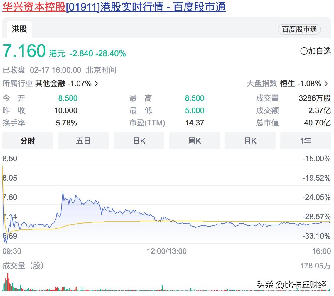 包凡失联的消息在市场引起一股巨浪,特别是资本市场的反应特别激烈。2月17日早盘,华兴资本控股股价暴跌32.8%,后续略有回调以28.%的跌幅收盘,股价为7.16港元。